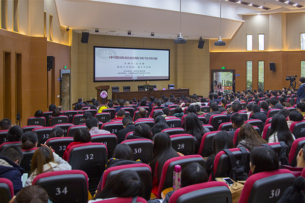 2016年12月19日上午9时,全国党建理论研究与思想政治教育专家、国防大学教授、博士生导师公方彬教授应邀主讲第三期“秦巴讲坛”,作“中国崛起的瓶颈与突破”专题学术报告。通川区委常委、组织部部长朱挺,学校校长王成端,党委副书记侯忠明,党委副书记、纪委书记雷超,副校长李壮成、徐晓宗等出席报告会。校长王成端主持报告会。
