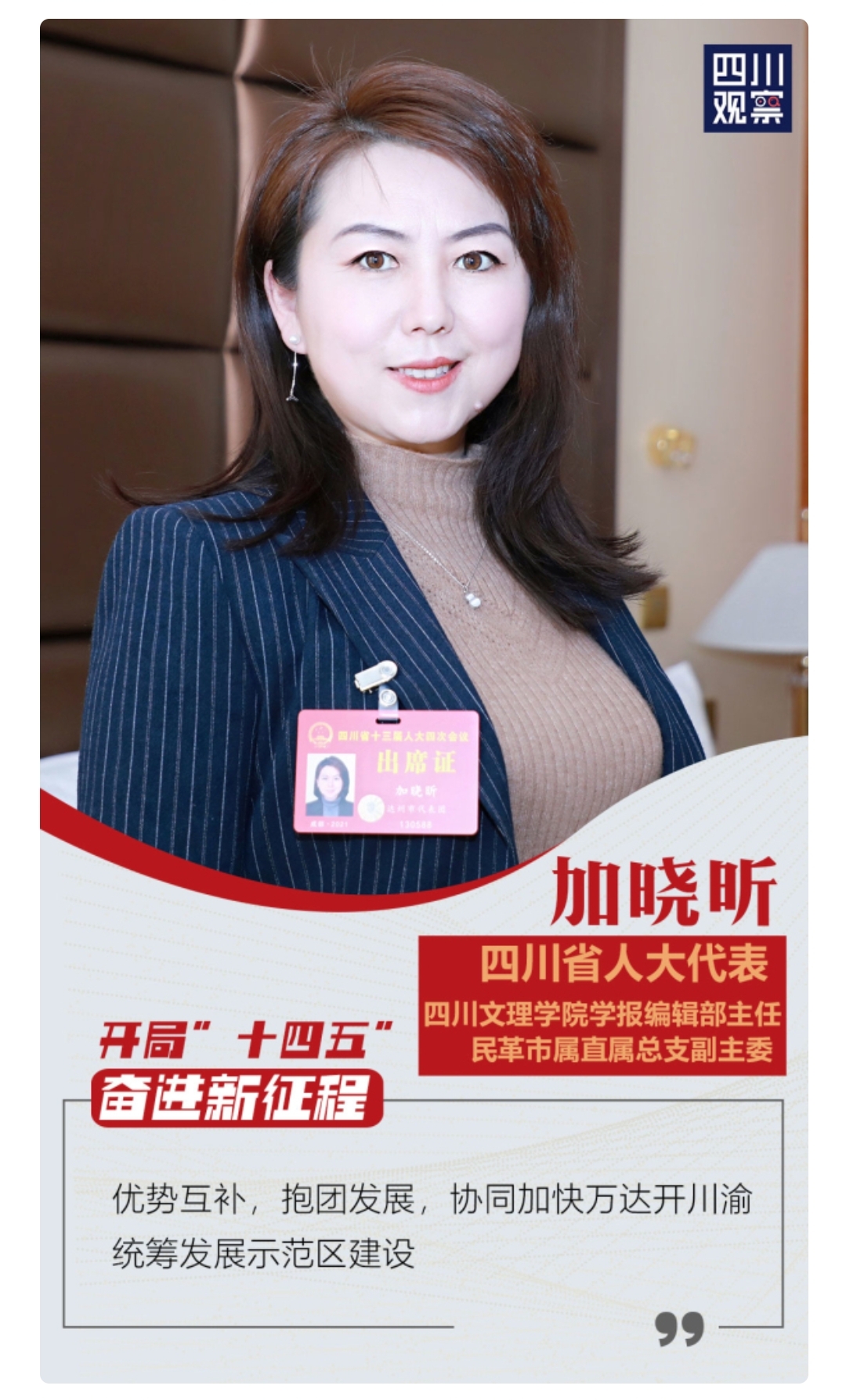 1月30日上午,四川省第十三届人民代表大会第四次会议在成都开幕。来自全省各地、各条战线的省人大代表齐聚一堂,依法履行宪法法律赋予的神圣职责,共商全面建设社会主义现代化四川大计。会议期间,四川省人大代表、pp电子学报编辑部主任、民革市属直属总支副主委加晓昕教授接受了《四川观察》的采访,在提交的《关于支持建设“大巴山·大三峡”旅游环线的建议》中,深刻论证了协同创建万达开川渝统筹发展示范区,优势互补,抱团发展的理念。建议省委政府要加强资金、项目、土地等方面的支持力度,加快川渝城市一体化发展,省政府及省旅游局、省交通运输厅等省级有关部门支持达州推进“大巴山·大三峡”文化旅游环线建设,将相关重点项目纳入全省交通发展规划,并重点支持巴山大峡谷创5A级景区工作和八台山-龙潭河-巴山大峡谷旅游通道建设。