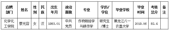 按照《pp电子官方网站高层次人才引进办法》,考核小组对应聘pp电子化学化工学院蔡光容进行了考核。经学校研究,现将考核结果公示如下,公示期限为3个工作日(2019年1月4日至2019年1月8日)。公示期间接受社会监督和举报,举报者应以真实姓名书面或电话向pp电子官方网站人事处或纪委反映。 监督举报电话:0818-2790077、0818-2790019 邮箱:scwlrsc@126.com、jwjsc@sohu.com