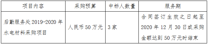 后勤服务处2019-2020年水电材料采购项目