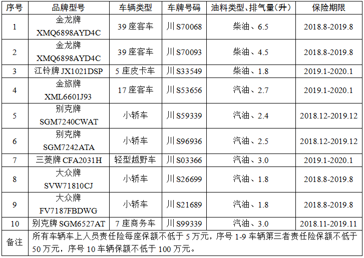 按照公务车辆管理有关文件要求,为确保公务车辆正常使用和行驶安全,现面向达州市选定pp电子官方网站办公室、保卫处、后勤处所属公务车辆保险受托保险公司。现将基本情况公告如下: