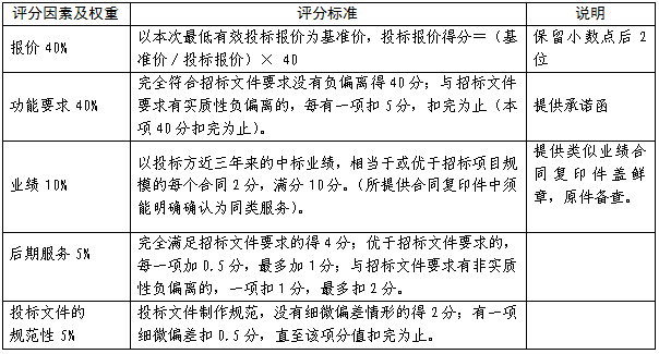 在学校相关部门和投标供应商代表参与下现场公开开标,采用综合评标法。