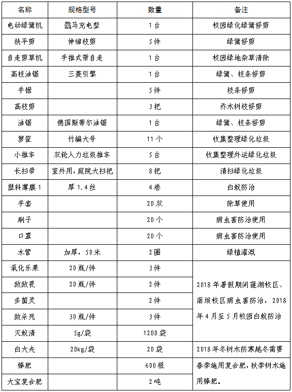 pp电子官方网站后勤处因校园绿化工作需要,拟采购一批绿化管护用品。现以公开招标方式确定供货公司,具体事项如下: