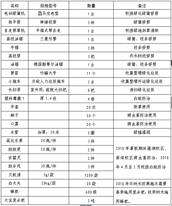 pp电子官方网站后勤处因校园绿化工作需要,拟采购一批绿化管护用品。现以公开招标方式确定供货公司,具体事项如下: