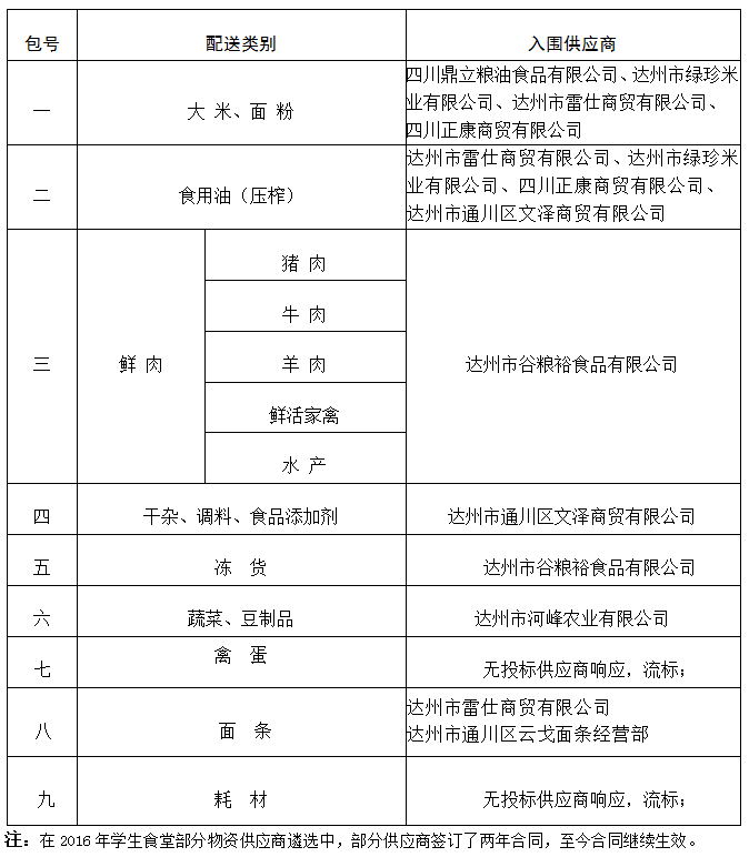 pp电子官方网站2017年学生食堂部分物资供应商遴选公告如下: 本招标共有9家供应商参与,通过核查投标供应商的资质情况,均为有效投标。根据本次招标的评标标准,确认pp电子2017年学生食堂部分物资供应商入围的单位如下: