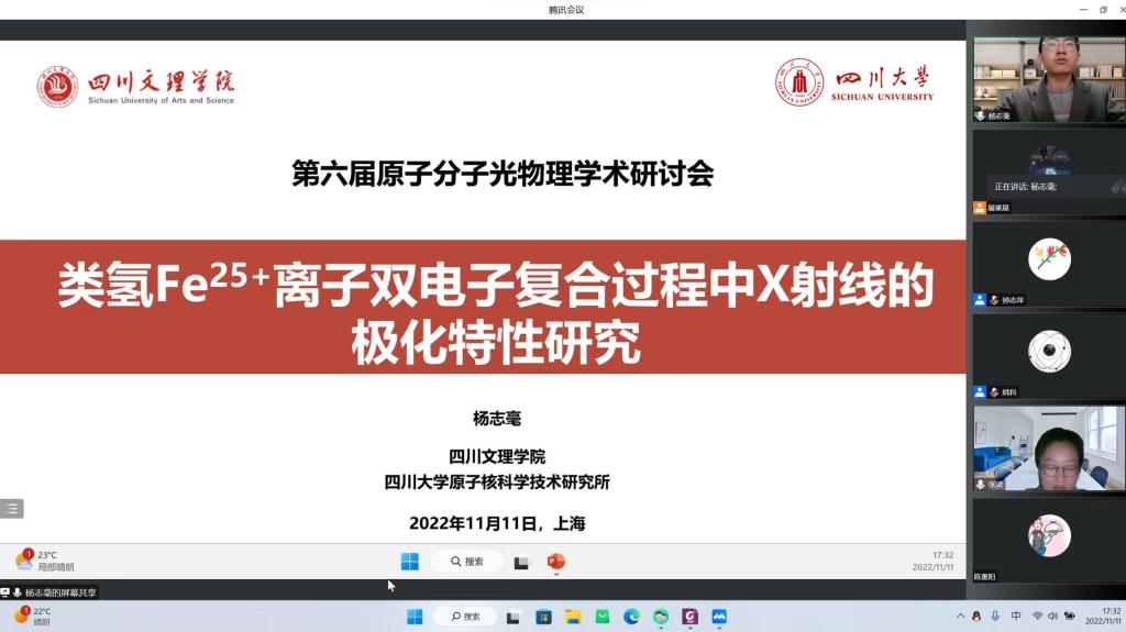 代表学校在第六届原子分子光物理学术会议上作线上报告