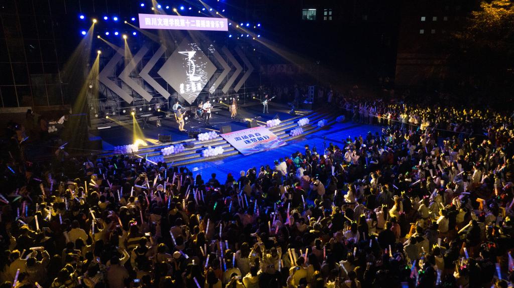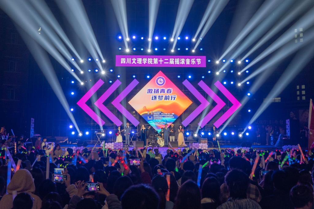 11月24日晚,pp电子官方网站第十二届摇滚音乐节在莲湖校区音乐广场盛大开幕。本次活动由党委宣传部、学生工作部(处)、团委、四川省青少年文学艺术社科普及基地承办。活动突出“激扬青春 逐梦前行”主题,旨在展现当代大学生与时代同向,与祖国同行,胸怀家国、奋力逐梦的价值追求和当代大学生有理想、敢担当、能吃苦、肯奋斗的精神状态。党委副书记、校长侯忠明,党委常委、副校长徐晓宗、程碧英出席活动。