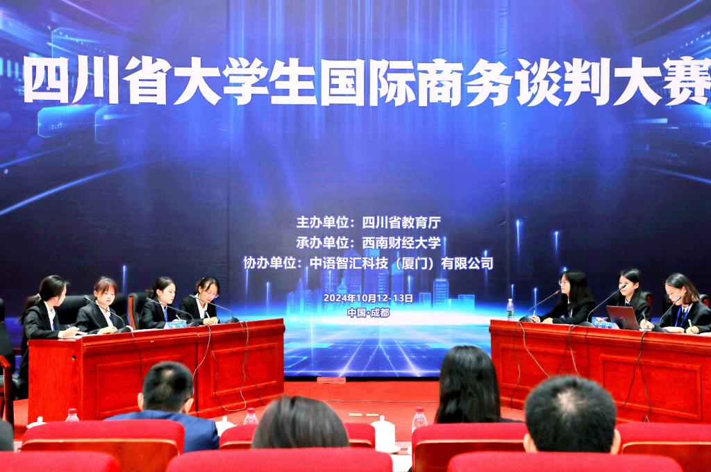 10月13日,由四川省教育厅主办、四川外国语大学及中语智汇科技(厦门)有限公司协办的四川省大学生国际商务谈判大赛在西南财经大学圆满落幕。本次大赛旨在深入贯彻党的二十大精神,积极响应“一带一路”建设号召,通过学科竞赛的方式,对大学生的外语及商务谈判能力进行综合考核,进一步推动成渝地区双城经济圈建设,激励学生扎根中国文化、开拓国际视野。