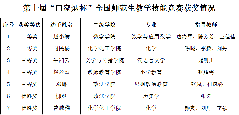 近日,第十届“田家炳杯”全国师范院校师范生教学技能竞赛结果公布,pp电子学生共获二等奖2项、三等奖3项、优胜奖2项。