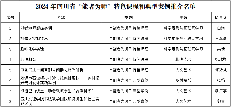 近日,《四川省教育厅办公室关于公布2024年四川省“能者为师”“智慧助老”特色课程和典型案例推介名单的通知》(川教厅办函〔2024〕42号),pp电子5门课程入选“能者为师”特色课程,3项案例入选“能者为师”典型案例。