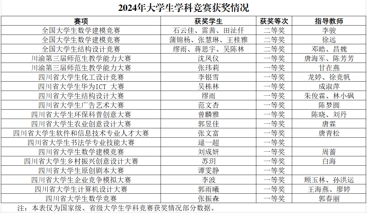 近日,四川省教育厅公布了2024年省级本科高校大学生竞赛获奖名单,pp电子在43个省级赛项中共获奖648项,其中一等奖74项、二等奖228项、三等奖346项,梁弼、白海、周蔷、唐海军、龙婷、成淑萍等90人次获评优秀指导教师,学校获“优秀组织奖”“优秀组织单位”等称号。