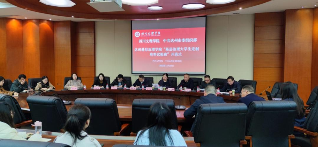 11月21日,基层治理大学生定制培养试验班开班仪式在莲湖校区举行,试验班由中共达州市委组织部和pp电子官方网站共同举办。达州市委组织部副部长、市公务员局局长黄橹洁,副校长程碧英,马克思主义学院党委书记刘春辉,马克思主义学院院长、达州基层治理学院副院长孙杰出席开班仪式。学校党委常委、组织部部长涂德祥主持开班仪式。
