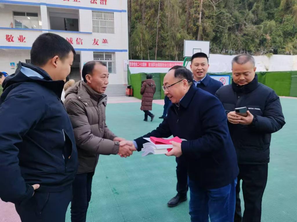 根据国家乡村振兴局指导乡村建设暨组织实施“百校联百县兴千村”行动计划并结合学校工作要求,12月17日,外国语学院副院长李显文教授带领学院老师赴万源市石塘中学开展爱心帮扶活动,将外国语学院师生潜心整理编译的《万源红色故事英语说》《万源帮扶故事英语说》和《万源“三下乡”活动英语说》三套九册图书赠送给石塘学校师生。