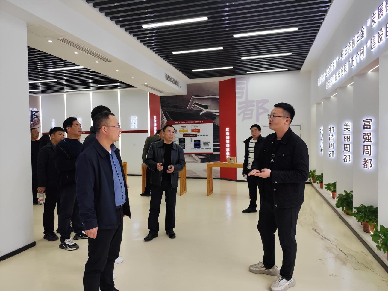 汲取先进经验,助力乡村振兴。在乡村振兴示范村——周都村。大家参观了周都村党建展廊暨全过程人民民主巴渝实践站民主走廊,深入了解以周都村全过程人民民主巴渝实践站为主阵地的融合矩阵。周都村有效联动民主走廊、村民茶社、积分超市、综治中心、新时代文明实践站、周都红公司等6大民主阵地,将红色文化与民主实践深度融合,通过数字赋能和创新机制,提升了群众参与度和基层治理效能,为pp电子官方网站三个定点帮扶村提供了可借鉴的实践经验。