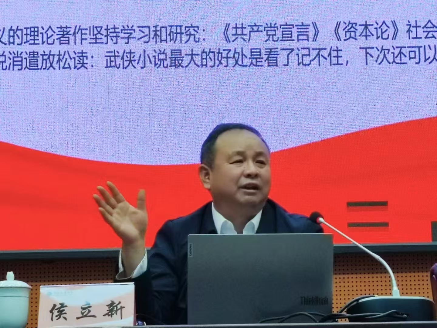通过对邓小平同志崇高精神风范的分析,侯教授向我们论述了要把学习作为前进的基础、把理想信念作为人生的灯塔、将创新作为事业发展的不竭动力、要心中有数才能遇事从容、家庭是一个好东西、知己是生命中的贵人、自律方能成就更好的自己、乐观是一种力量、身体是革命的本钱等九点启示,勉励新时代的青年青春是用来奋斗的,要用脚步丈量祖国大地、用眼睛发现中国精神、用内心感应时代脉搏,作新时代的有为青年。